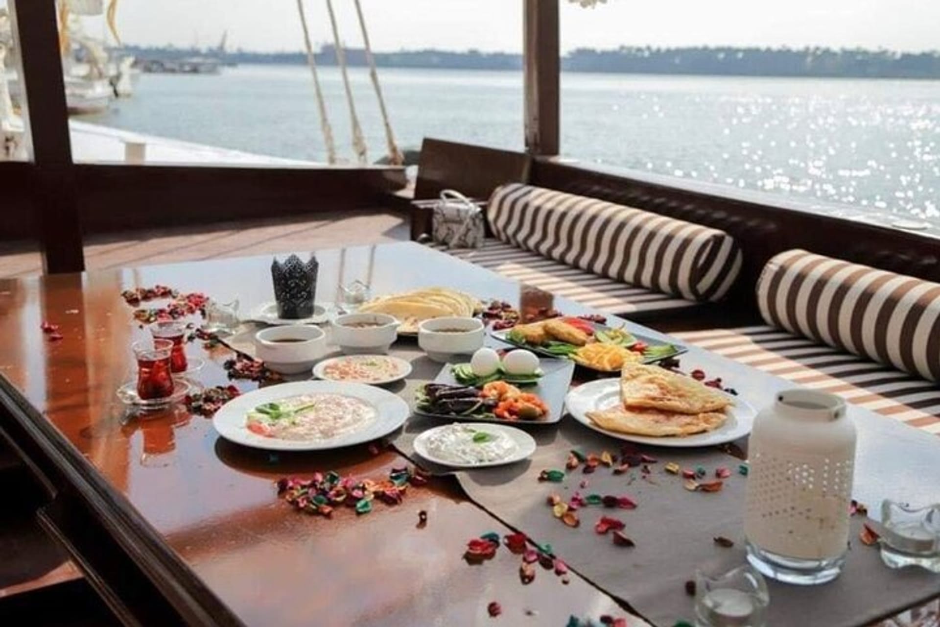 Dinner cruise on the Nile 3 hours’ trip starts every day from 7:00 pm to 10:00pm, Private trip includes Open Buffet Dinner, Our Prices Includes All Taxes Services, 2 hours sailing trip, Belly Dancing show, Tanoura Show, Private Air Conditioned Vehicle Newest Model and Pickup & drop off Transfers from customer location in either Cairo or Giza, Tour excludes Personal Items, Tipping and Any Beverages beside Dinner.